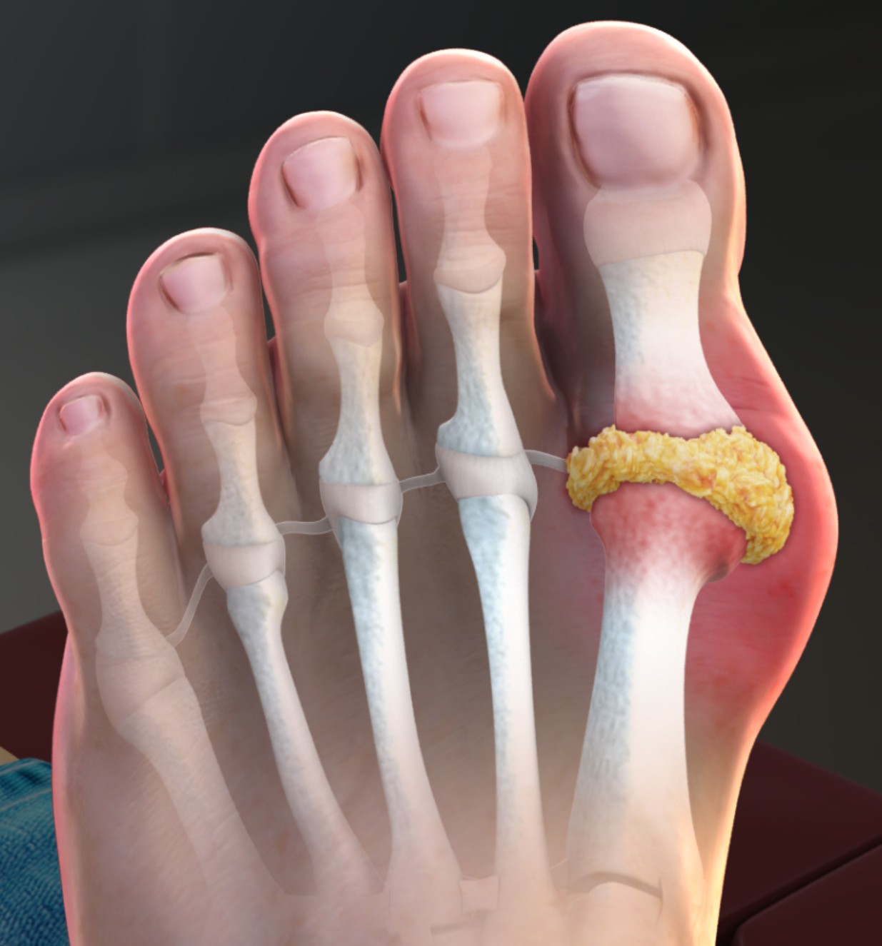 통풍(Gout)은 우리 몸속에서 요산(尿酸)이 지나치게 많이 생성되거나 제대로 배출되지 못해 관절 주변에 요산 결정이 쌓이면서 생기는 질병입니다.
