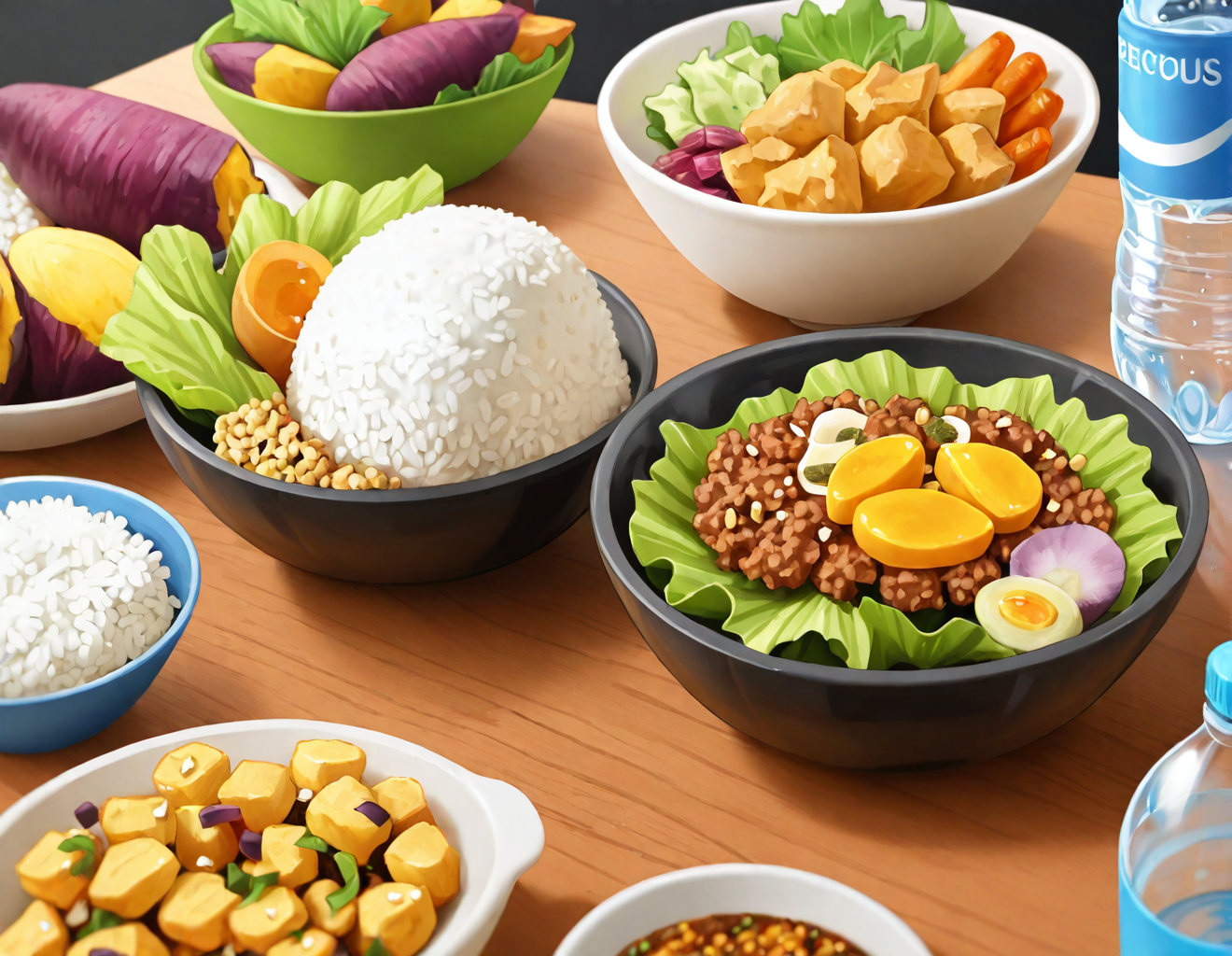 - 점심: 현미밥, 채소 중심의 비빔밥, 두부조림